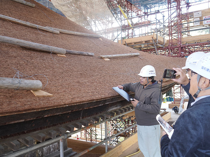 2023年からは70年ぶりに檜皮葺き(ひわだぶき)屋根の葺き替え工事が行われています。